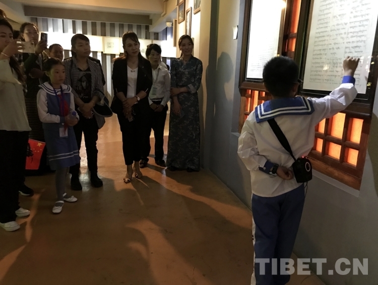 圖為小小講解員在根敦群培紀(jì)念館為參加活動(dòng)的黨員進(jìn)行講解