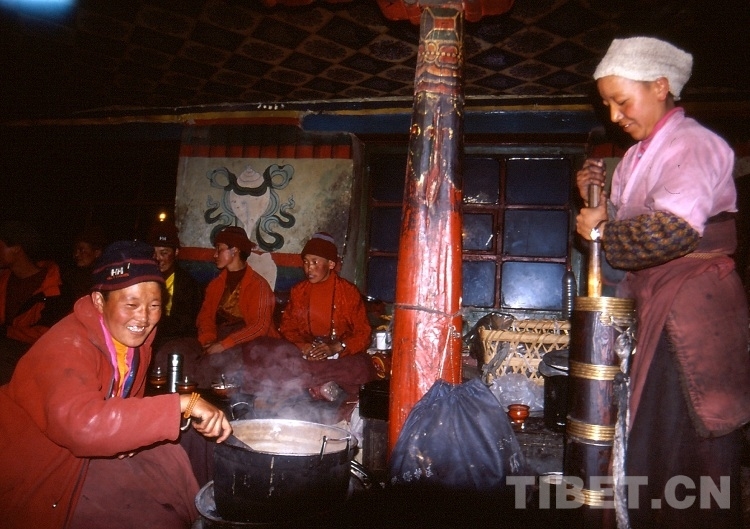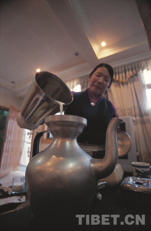 圖為制作濃香的酥油茶