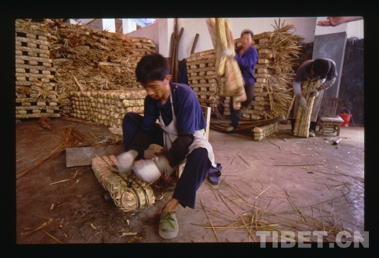 圖為雅安某茶廠每年生產(chǎn)大量的磚茶供應(yīng)西藏
