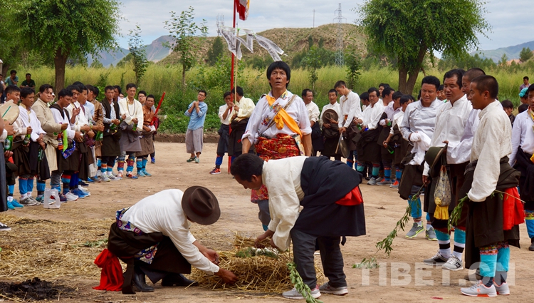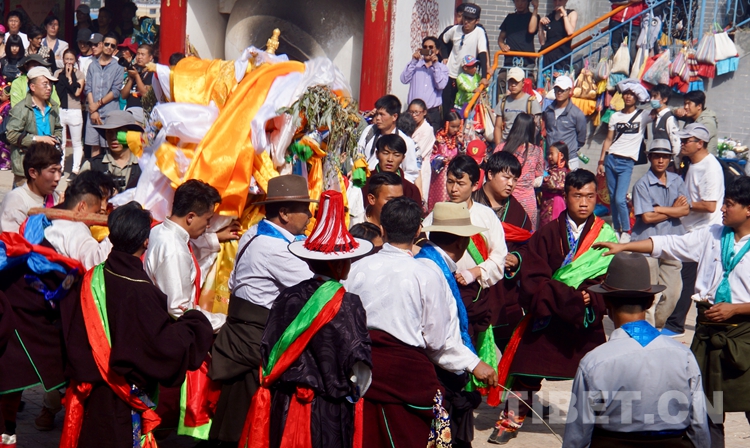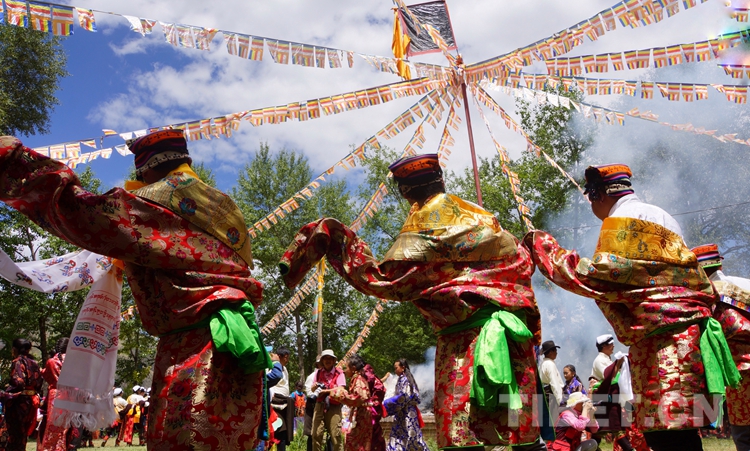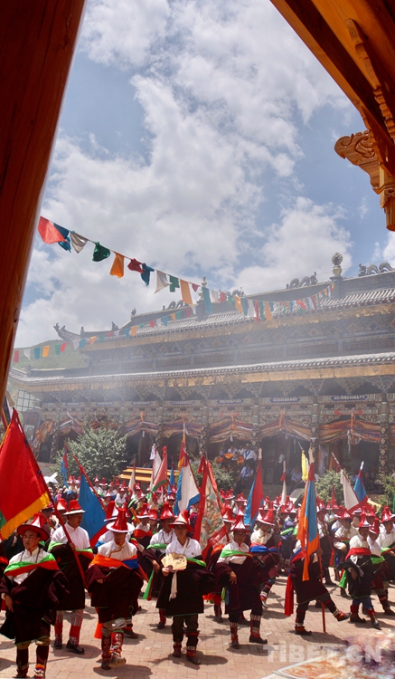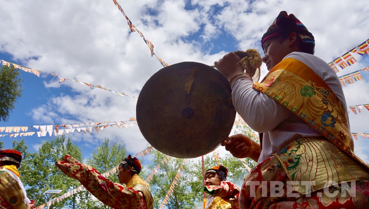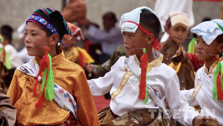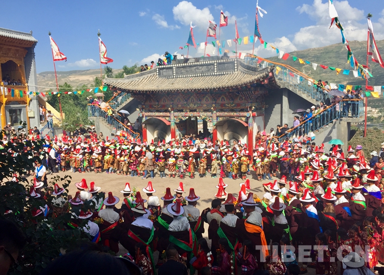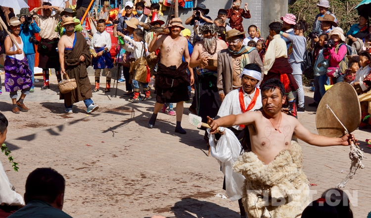 圖為軍舞儀式,軍舞傳說是為紀念唐蕃停戰(zhàn)交好而舞