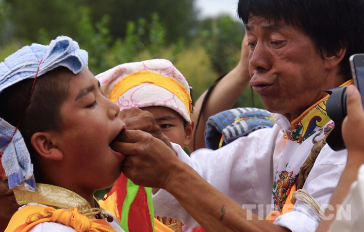 如果不來熱貢六月會,我不會知道,小小的少年可以那么勇敢——眼看一根鋼釬穿過自己的臉頰竟毫無懼色!如果不來熱貢六月會,我也不會知道,神舞儀式中盛裝款款的少女能美得那般端莊和肅穆!