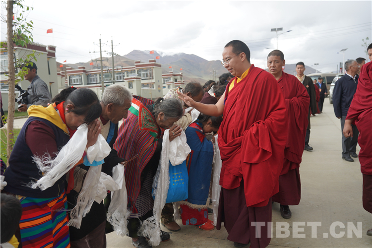 圖為十一世班禪為甲崗村村民摸頂賜福 攝影:王淑