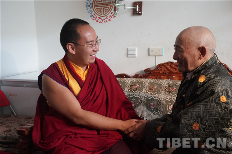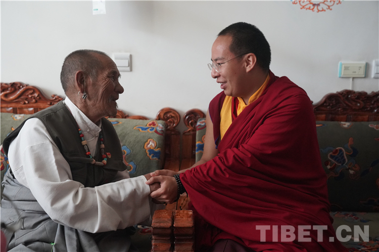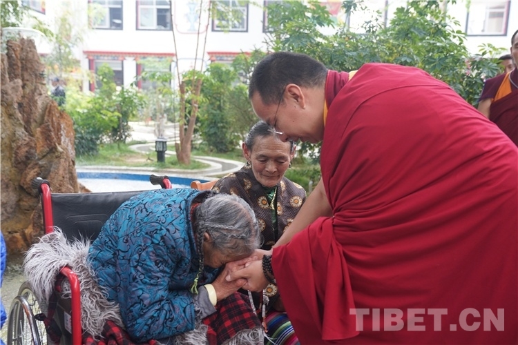十一世班禪在參加各項活動期間,專程看望阿里地區(qū)“雙集中”供(收)養(yǎng)服務中心的老人和孩子們,并為每一位老人摸頂賜福,噓寒問暖,給老人和孩子們帶去了親人般的關懷。一位老阿媽(嬤啦)當場緊緊拉著十一世班禪的手放在自己的額頭,感動流淚,嘴里不停地說“突吉其,突吉其”(謝謝!謝謝?。?。十一世班禪和老人們圍坐在一起飽含深情地說:“在黨中央的關心關懷下,老人家弱有所扶、老有所養(yǎng)、病有所醫(yī)、住有所居,這充分體現了社會主義制度的無比優(yōu)越性,看到你們健康幸福的生活我很欣慰,我會為你們祈禱,我會再來看望你們。”充滿溫情的一幕使在場人員無不動容。