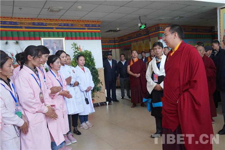 圖為十一世班禪看望阿里地區(qū)“雙集中”供養(yǎng)中心的老人時,對該中心工作人員殷切寄語 攝影:王淑