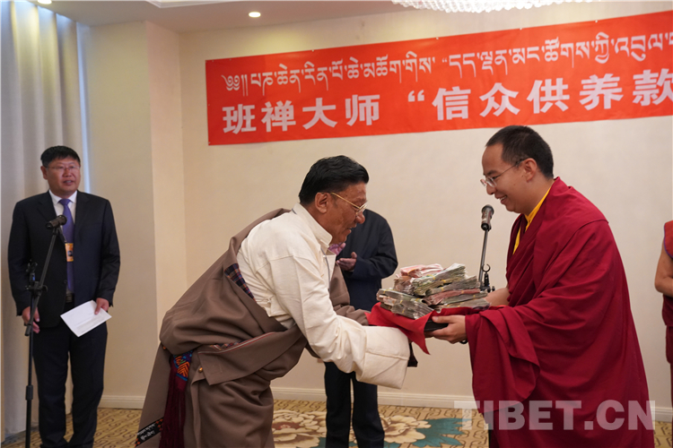 圖為十一世班禪“信眾供養(yǎng)款”捐贈儀式 攝影:王淑