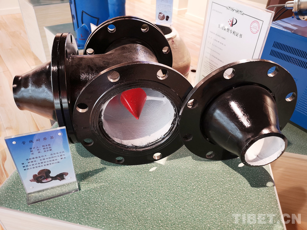圖為楊永磊設(shè)計(jì)的管線耐磨器,直徑大,且設(shè)有分流錐、耐磨層,解決了粉劑介質(zhì)管線反復(fù)磨穿的問題 攝影:李元梅