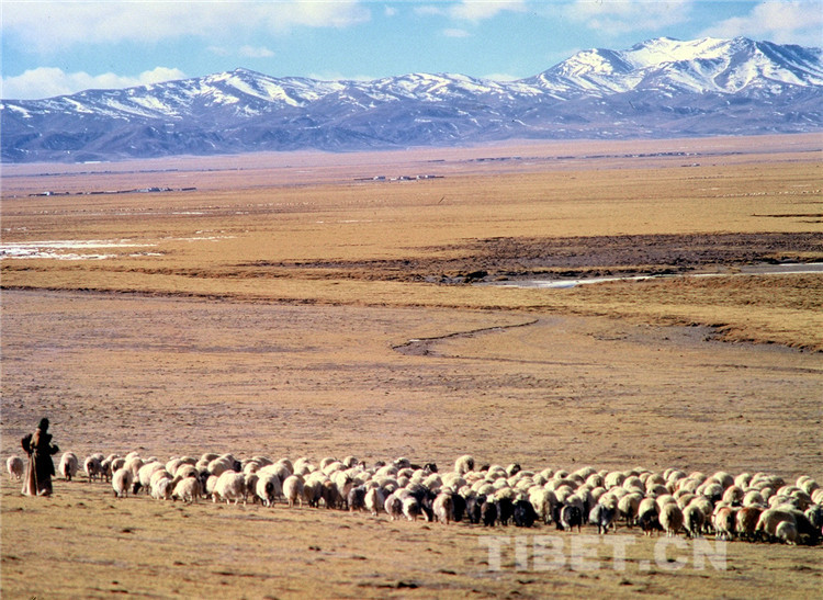 圖為在雙湖草原放牧的羊群。(唐召明2001年攝)