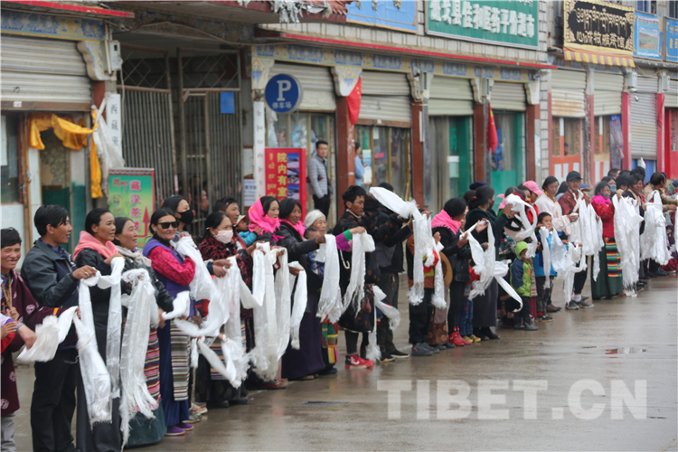 恰逢“羌塘恰青格薩爾賽馬藝術節(jié)”開幕,各地的僧俗信教群眾從方圓幾百公里的牧區(qū)趕來,他們身著盛裝,手捧哈達,滿含期待地在那曲市道路兩邊恭迎全國政協(xié)常委、中國佛教協(xié)會副會長、中國佛教協(xié)會西藏分會會長班禪額爾德尼?確吉杰布重返家鄉(xiāng)那曲。