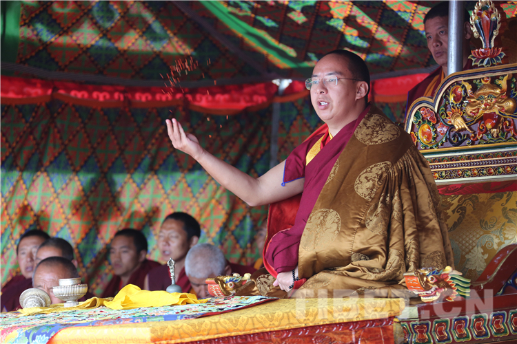 圖為十一世班禪為信教群眾舉行長壽灌頂 攝影:扎西