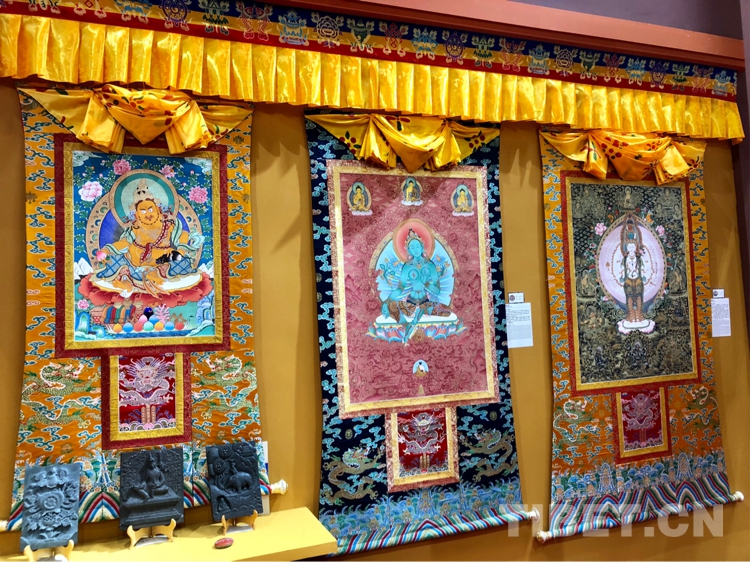 圖為青海省黃南藏族自治州非遺文化展區(qū)展出的熱貢唐卡 攝影:格桑嘉措