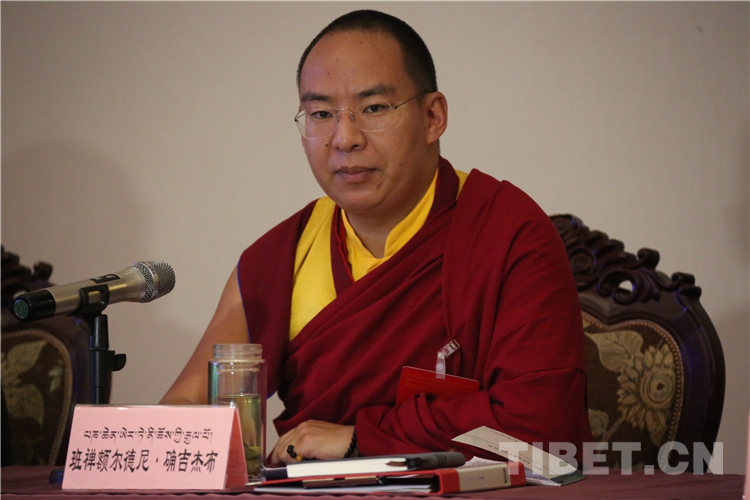 西藏自治區(qū)政協(xié)副主席、中國(guó)佛教協(xié)會(huì)西藏分會(huì)常務(wù)副會(huì)長(zhǎng)、西藏佛學(xué)院院長(zhǎng)珠康?土登克珠以“維護(hù)祖國(guó)統(tǒng)一和民族團(tuán)結(jié),堅(jiān)決反對(duì)分裂”為題,作教義闡釋演講。