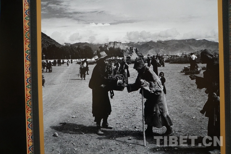 圖為舊西藏隨處可見(jiàn)的乞丐,乞丐身后的建筑為桑珠孜宗堡。陳宗烈 攝