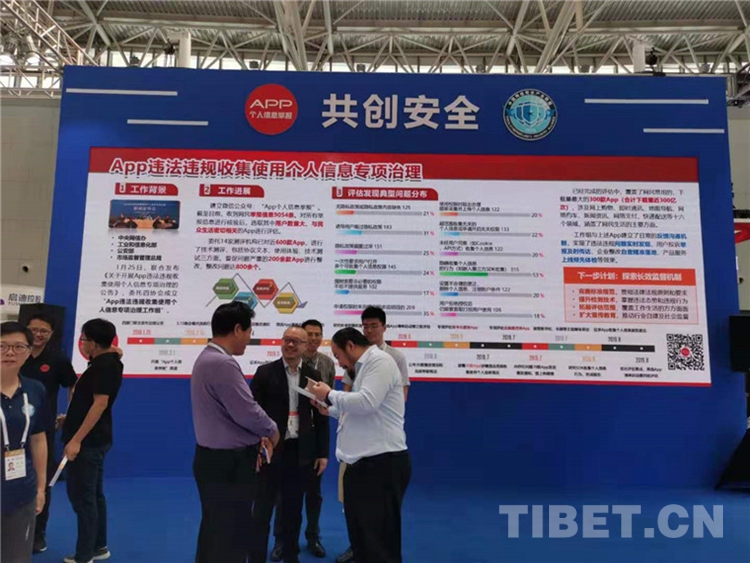 圖為2019年網(wǎng)絡(luò)安全博覽會(huì)上App個(gè)人信息保護(hù)展臺“共創(chuàng)安全”展板