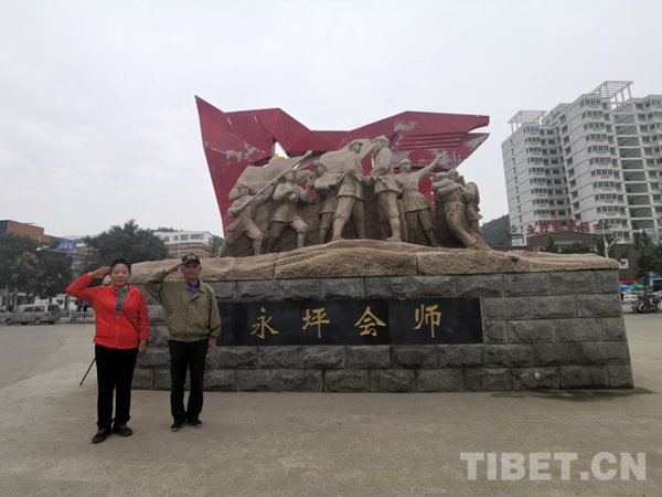 圖為金堅(jiān)和愛人在紅二十五軍長征結(jié)束地——陜北永坪。