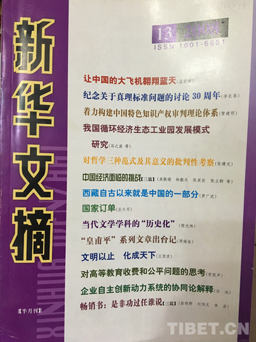 圖為羅光武《西藏自古以來就是中國的一部分》一文在新華文摘刊發(fā) 攝影:王茜