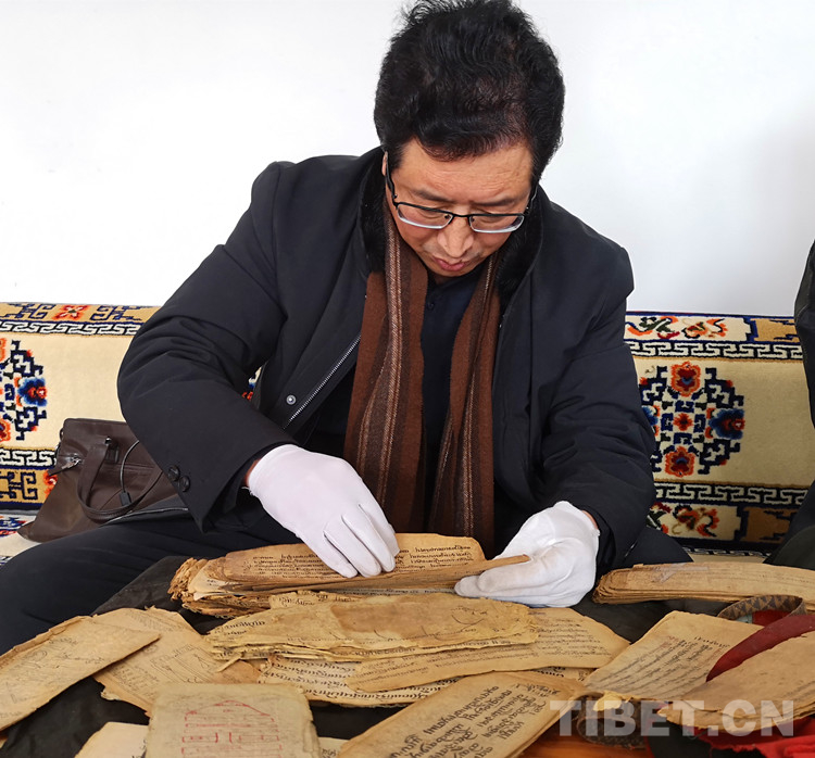 圖為洛賽在甘肅省甘南藏族自治州舟曲縣村民家搜集古藏文經卷 圖片由洛賽提供
