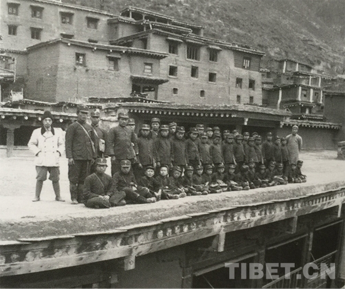 1918年,義敦縣府即毀于戰(zhàn)火,直到1939年才實(shí)質(zhì)性復(fù)治。該年7月,第24軍一部到達(dá)義敦,開始重新修建縣府。期間因地方實(shí)力派對(duì)義敦復(fù)治采取抵制態(tài)度,屢生武力沖突,直到年底,縣府才基本修建完畢,義敦縣府正式辦公。當(dāng)時(shí),所謂與簡陋的縣政府形成鮮明對(duì)比的德格縣(需要說明的是,當(dāng)時(shí)的義敦縣并沒有學(xué)校)小學(xué)“豪華的學(xué)堂,其高大氣派的校舍”。照片的背景,其實(shí)是西康有名的德格土司官寨。