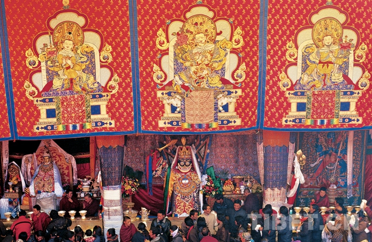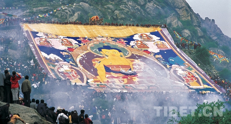 每年藏歷的六月底,在寺院靜休了一兩個(gè)月的僧人們解禁出寺,百姓為了犒勞僧人,備上自釀的酸奶敬奉,并舉行郊游野宴,為他們帶去藏戲表演……雪頓節(jié)由此形成。每年藏歷7月1日,雪頓節(jié)的開始也拉開了下半年節(jié)日的序幕。