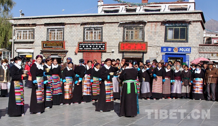 圖為大昭寺廣場(chǎng)上不時(shí)能看到慶祝節(jié)日的歌舞