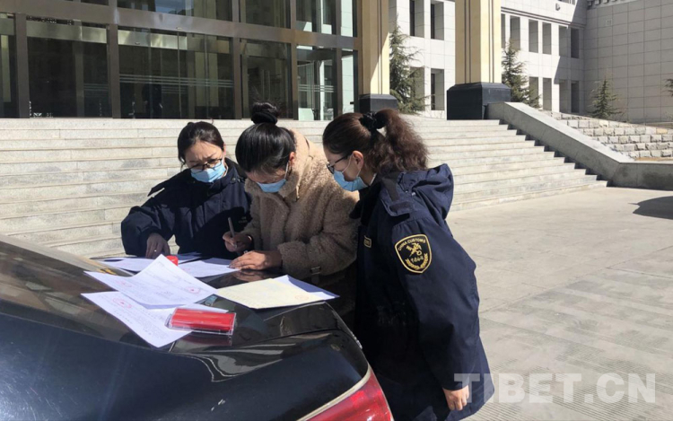 圖為拉薩海關關員實地指導辦理相關手續(xù) 圖片由拉薩海關提供