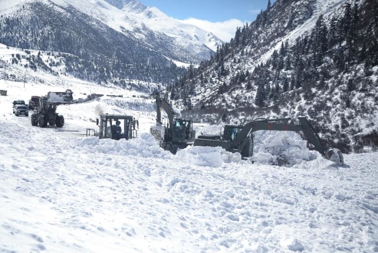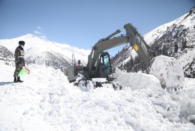 為盡快恢復(fù)通行,安全員時刻關(guān)注山體情況,確保一旦發(fā)生次生雪崩災(zāi)害能夠及時傳達撤退命令。操駕員駕駛救援機械相互協(xié)調(diào)作業(yè),快速清理路基塌方體。官兵們還給滯留群眾發(fā)放了食物。