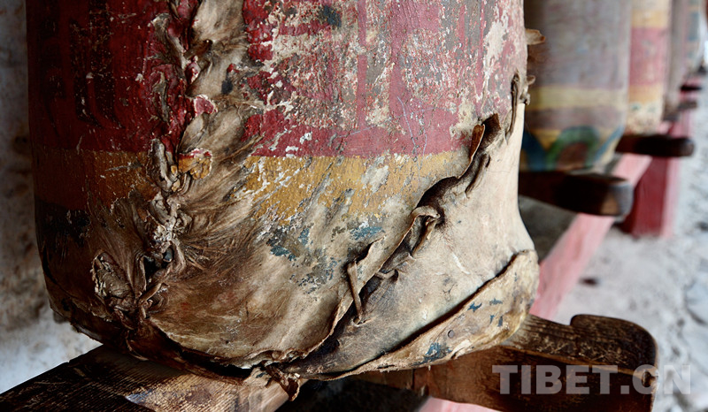 圖為縫補(bǔ)過(guò)的羊皮經(jīng)筒