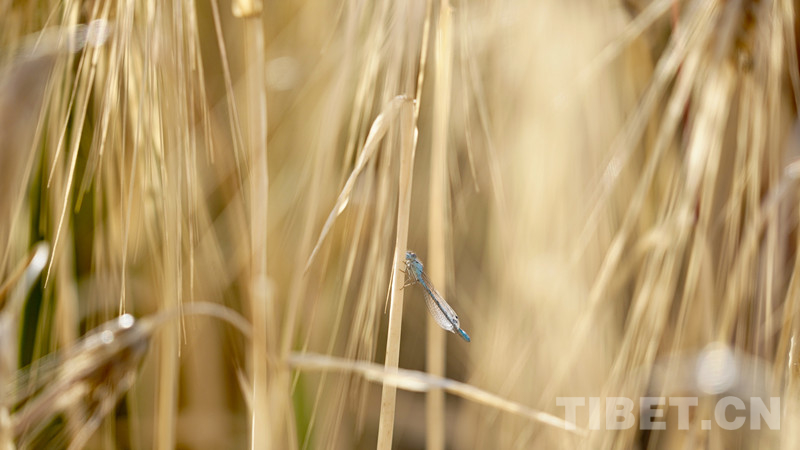 層層疊疊的斗拱,告訴我們藏地也有如此精湛靈巧的木工手藝,斗拱上的彩繪,彰顯著強(qiáng)烈的高原性格和藏式審美。村子里簡(jiǎn)陋的小經(jīng)堂,回廊里的柱子上,釘著幾串珠子,不要隨意去撥動(dòng)它們,那是村里的老人用來(lái)記磕頭次數(shù)的。白塔上的佛眼,寥寥幾筆,卻勾出了靈動(dòng)的眼神,看著你,看著我,洞察一切。金黃色的青稞田里,成熟的香氣充溢著四周的空氣,一只天藍(lán)色的豆娘停在青稞桿上,趕在人們收割糧食之前,擁抱它的秋天。