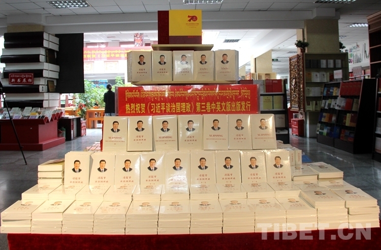 圖為西藏拉薩市新華書店碼放整齊的《習(xí)近平談治國(guó)理政》第三卷 攝影:趙二召