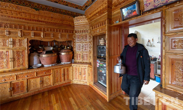 來到村民仁青家里,仁青正在煤氣灶上燒水。“平時(shí)自己在工地上開裝載機(jī),現(xiàn)在家庭年收入10多萬元?!闭勂瓞F(xiàn)在的生活仁青開興地說,以前只有過年才可能吃到的大米,現(xiàn)在已經(jīng)是每家每戶的家庭便飯。