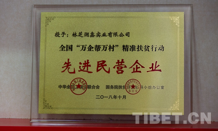 圖為潤(rùn)鑫公司獲得的“全國(guó)‘萬企幫萬村’精準(zhǔn)扶貧行動(dòng)先進(jìn)民營(yíng)企業(yè)”稱號(hào) 攝影:趙耀