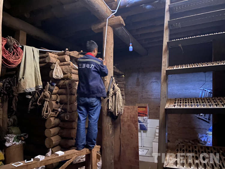 圖為電力技術(shù)工作人員為老百姓免費更換木質(zhì)房屋中的電力線路