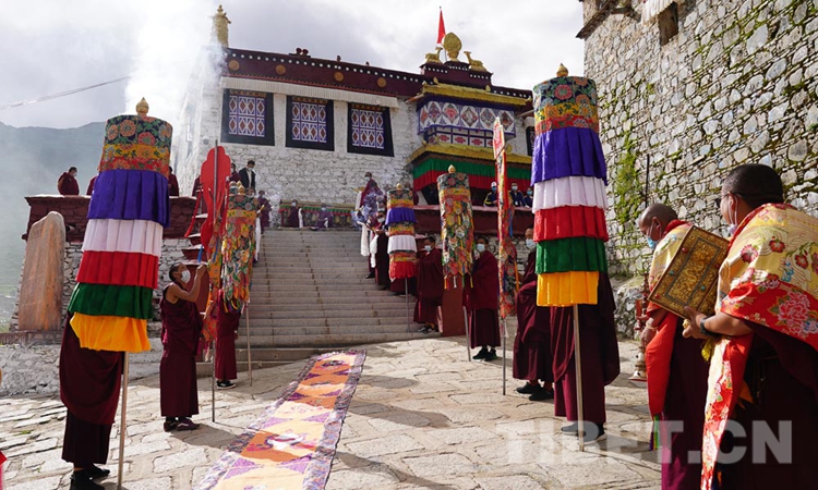 在乳巴寺,十一世班禪先后朝拜了甘珠爾拉康、文物珍寶殿、護(hù)法神殿等,隨后在杜康殿為僧眾摸頂傳授《兜率天上師瑜伽修法》。(中國(guó)西藏網(wǎng) 記者/王淑 趙耀 鄭朔)