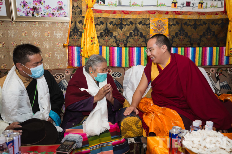 圖為十一世班禪與三崗村村民尼瑪頓珠一家親切交談 攝影:鄭朔