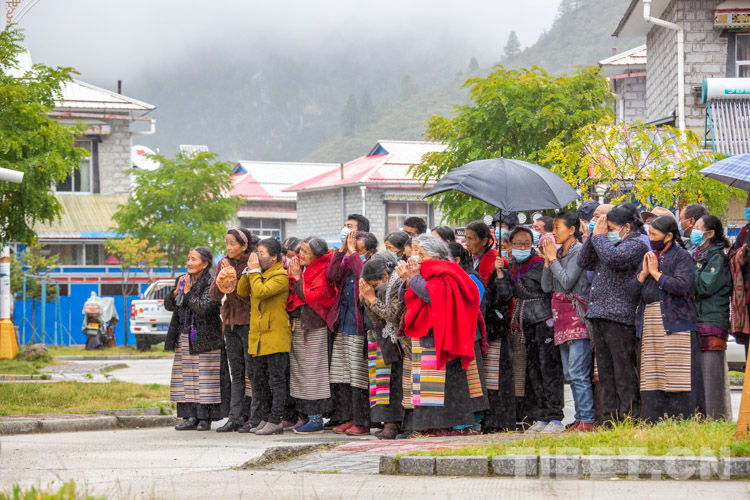 圖為冒雨等候十一世班禪的信教群眾 攝影:趙耀