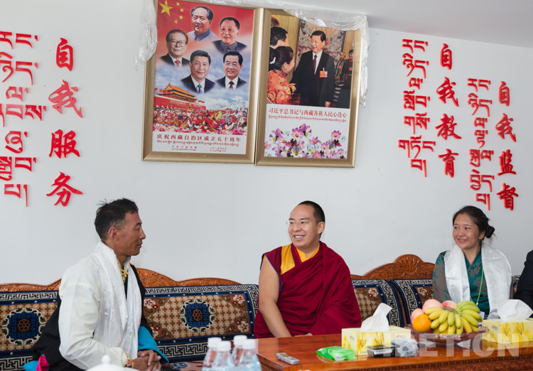 “以前住在哪里?現(xiàn)在住得暖和嗎?生活器具齊全嗎?一年的收入有多少?”十一世班禪走進(jìn)村民拉巴次旺家中,親切地與拉巴次旺一家人交談。