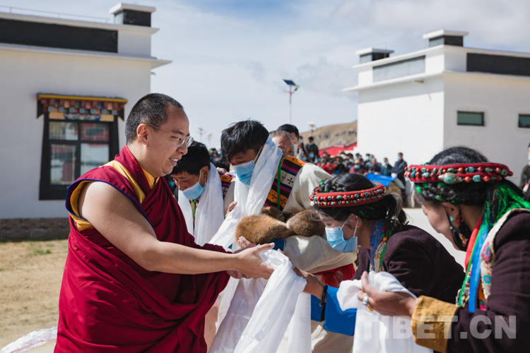 同樣期盼著十一世班禪到來(lái)的還有堆納鄉(xiāng)古汝村,9月27日上午,多慶湖畔、卓木拉日峰下,海拔4500余米的古汝村迎來(lái)了期盼許久的十一世班禪。在隆重?zé)崃业臍g迎儀式中,十一世班禪一行走進(jìn)村委會(huì)。