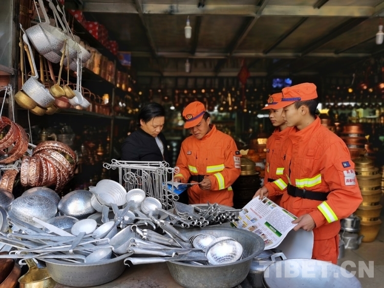 圖為進(jìn)入店鋪宣傳防火知識(shí)