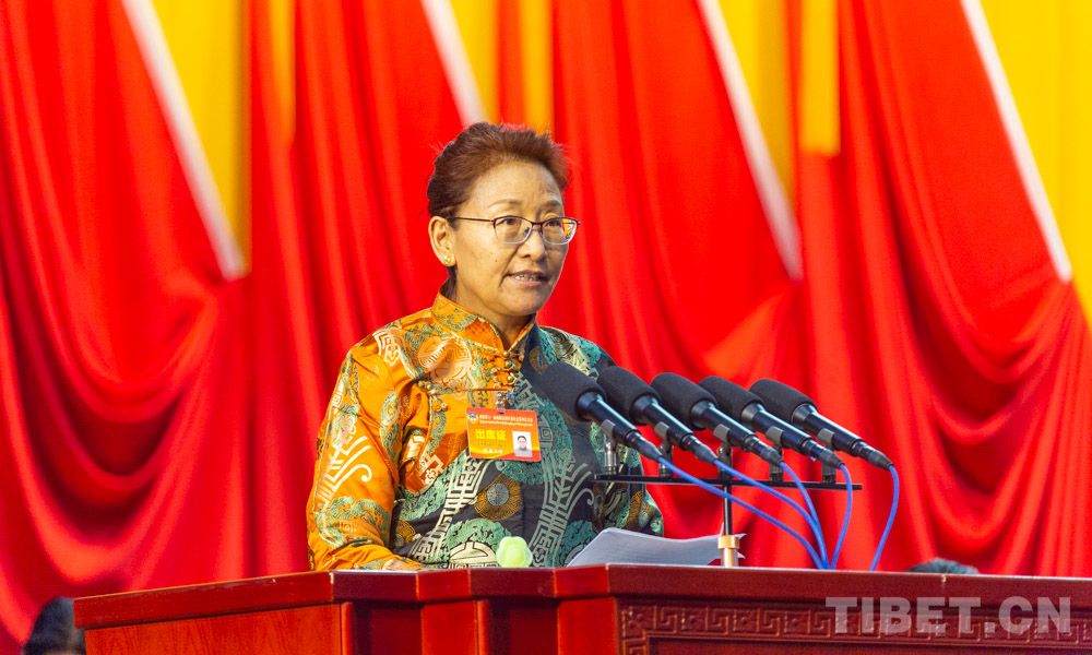 圖為格桑玉珍在政協(xié)第十一屆西藏自治區(qū)委員會第四次會議上發(fā)言 攝影:趙耀