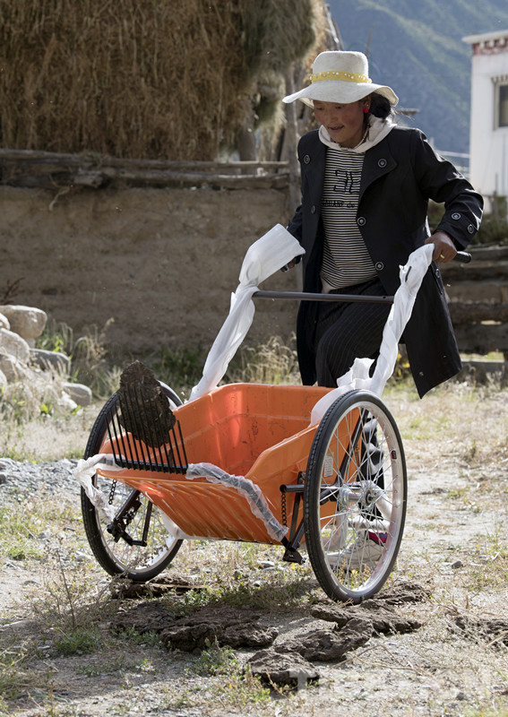 這是西藏昌都市邊壩縣邊壩鎮(zhèn)一位藏族婦女,正在使用北京建藏援藏工作者協(xié)會(huì)所捐贈(zèng)的高原撿拾車撿拾牛糞(唐召明2020年8月19日攝)