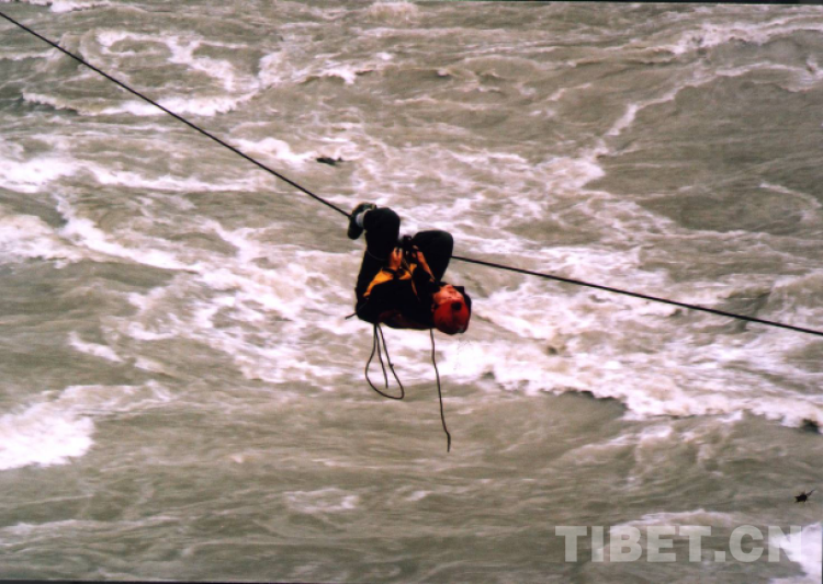 本世紀(jì)初,墨脫群眾仍使用溜索通過雅江的方式出行。