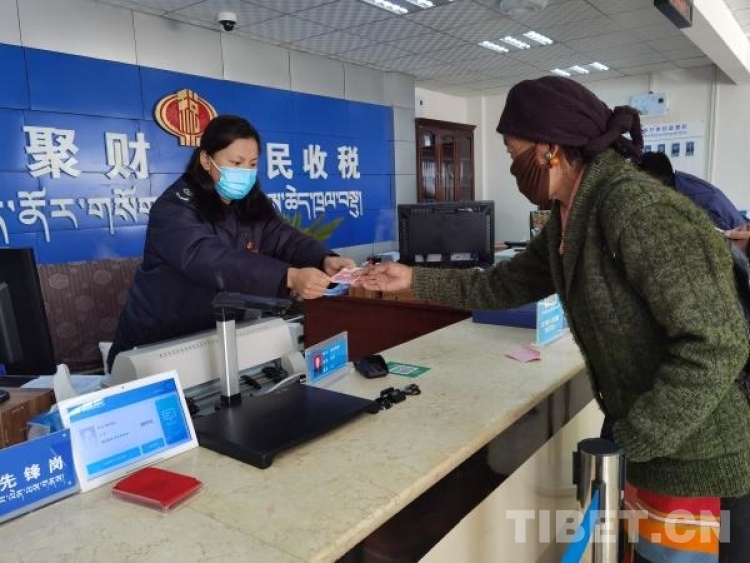 圖為國(guó)家稅務(wù)總局薩迦縣稅務(wù)局辦稅服務(wù)廳里稅務(wù)人員在為群眾辦理業(yè)務(wù)