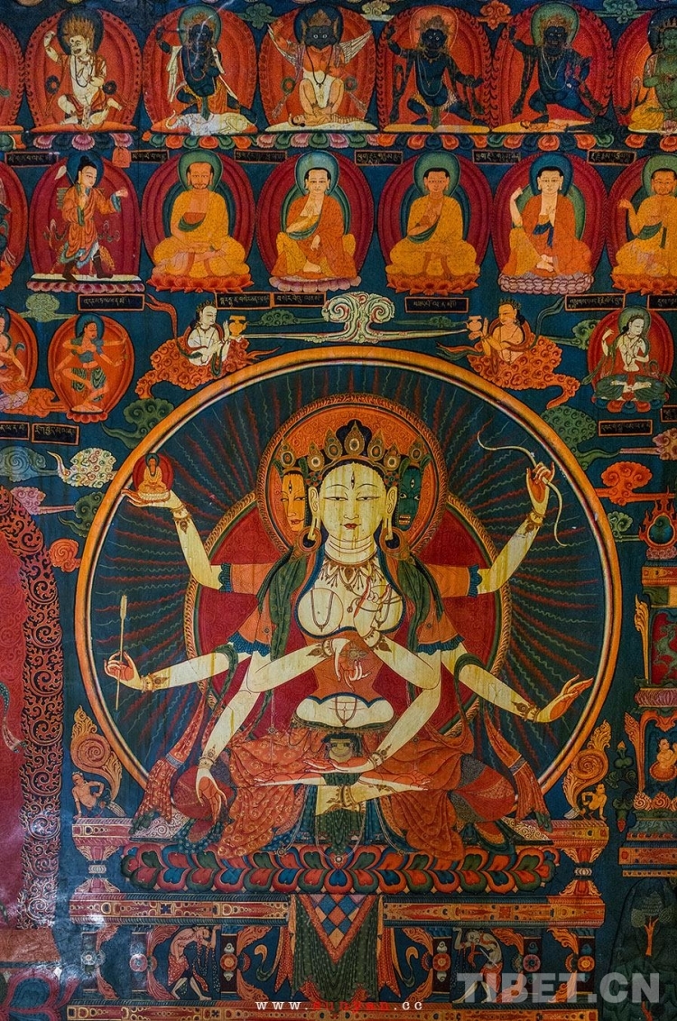 古格王朝遺址遺存數(shù)量最多、最為完整的是它的壁畫,古格壁畫氣勢宏大、風(fēng)格獨(dú)特,由于所處地理位置及受多種外來文化的影響,古格壁畫帶有明顯的克什米爾特點(diǎn)。