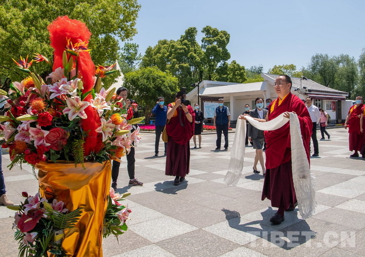 10日上午,班禪專程來到位于上海市青浦區(qū)練塘鎮(zhèn)的陳云紀念館,認真聽取了陳云同志有關事跡,并向陳云銅像敬獻哈達,追思陳云同志愛國憂民、為共產主義事業(yè)鞠躬盡瘁的偉大一生……