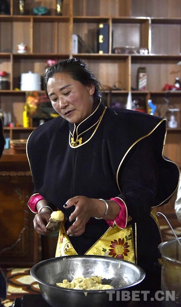 圖為2020年11月,工布新年“古突”夜,一位藏族婦女在制作“結達” 攝影:王媛媛