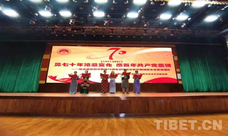 5月23日是西藏和平解放70 周年紀(jì)念日。23日上午,由西藏自治區(qū)拉薩市蔡公堂街道和西藏社會主義學(xué)院共同舉辦的紀(jì)念西藏和平解放70周年頌祖國、念黨恩朗誦暨文藝表演活動舉行?,F(xiàn)場鮮花嬌艷,燈光炫目,旋律悠揚(yáng),歌聲嘹亮。