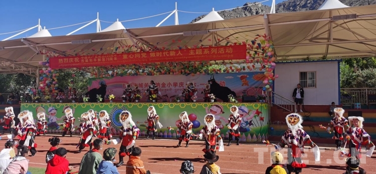圖為西藏自治區(qū)拉薩市城關(guān)區(qū)納金小學(xué)“童心向黨、做時(shí)代新人”六一兒童節(jié)活動(dòng)現(xiàn)場(chǎng)