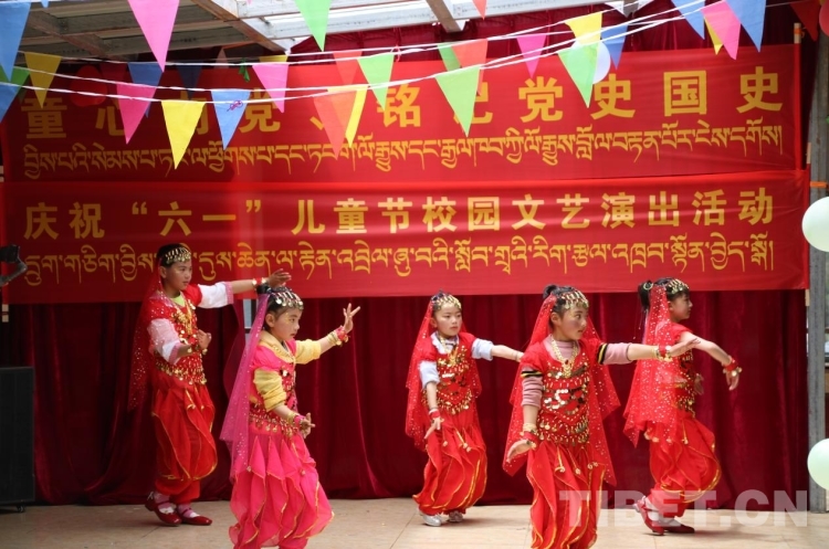 圖為玉麥鄉(xiāng)小學的孩子們進行舞蹈表演