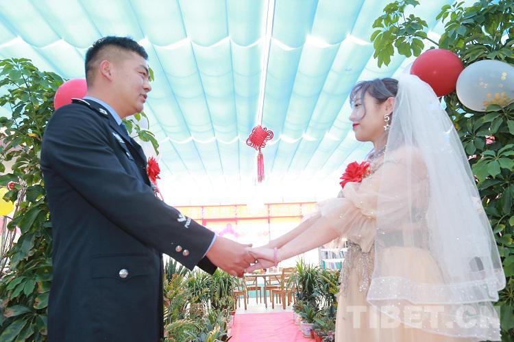 中國(guó)西藏網(wǎng)訊 西藏有多美?就像郭哲稱贊自己的愛(ài)人一樣:只應(yīng)天上有,世間本來(lái)無(wú)。正是在移民管理警察守護(hù)的這片大美雪域邊關(guān),西藏自治區(qū)阿里邊境管理支隊(duì)日松邊境派出所的民警郭哲與自己的新娘王從琬攜手走進(jìn)了婚姻殿堂。