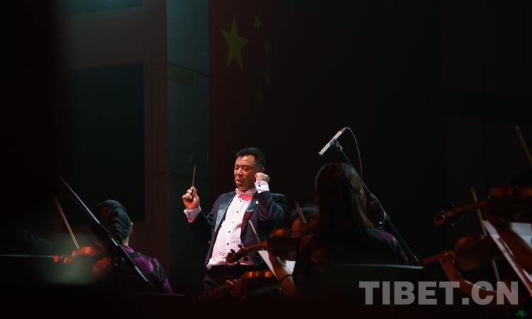 音樂會現(xiàn)場,管弦樂《節(jié)日的拉薩》、管弦樂《紅色娘子軍》序曲、女聲獨(dú)唱《唱支山歌給黨聽》、管弦樂《我的祖國》、獨(dú)唱《我愛你,中國》、小提琴與樂隊(duì)《共產(chǎn)黨來了苦變甜》等經(jīng)典曲目輪番登場。