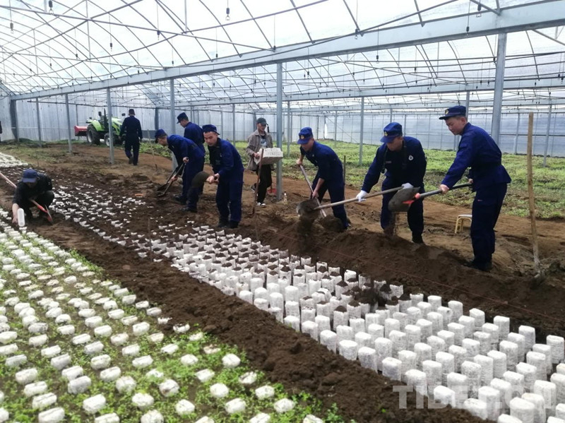 米林縣南伊村位于林芝市南部,全村一共擁有36個大棚,需要種植14萬株靈芝菌包,但是全村38戶167人中,老人小孩居多,青壯勞動力只有70個,勞動力匱乏是南伊村的真實寫照。得知這一情況后,作為黨支部共建單位的米林縣森林消防中隊主動靠上去,組織指戰(zhàn)員走進田間地頭,幫助村民們種植菌包。